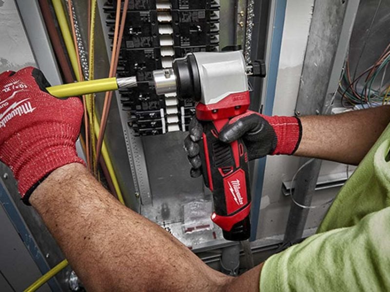 Two: the new Milwaukee cordless cable stripper models feature a right-angle design and a compact head. This design lets you get into those crowded panels and switch gears easily. Where you were once stuck having to awkwardly jockey for position, now you can slide your stripper into the place you actually need them.