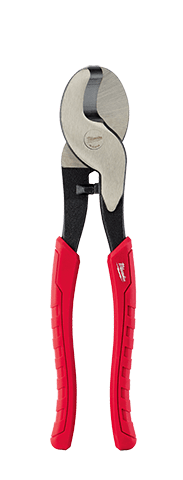 Milwaukee Cable Cutting Pliers feature aย hardened blade for clean cuts through 4/0 Aluminum or 2/0 Copper wire. Theyย offer an optimized bevel jaw design that delivers clean cuts and minimizes deformation of the wire. They alsoย comes equipped with rubber overmolded grips for added user comfort.