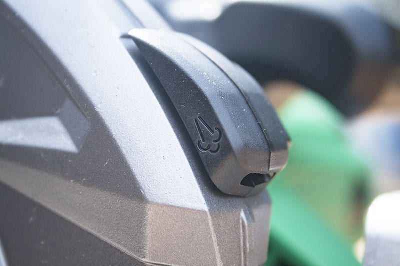 Metabo HPT included two noteworthy dust control features on the RipMax. First, the blade guard funnels a lot of the sawdust through a channel at the top and, presumably, off to the right of the work area. Secondly, a dust blower on the front of the blade guard keeps the cut line clear of sawdust. Of course, there will still be a significant amount of dust particles in the air. Most of us will never do it, but itโs a wise practice to wear a mask around so much dust. I know, I know, some readers will probably have to snuff out that cigarette before putting the mask on to protect their respiration. If youโre lucky, I might include some more jokes.