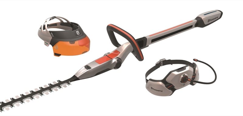 Husqvarna asked: What if they took all of their needs as well as the current line up of hedge trimming products and came up with a new type of hedge trimmer system? The Husqvarna Ramus is a “holistic” solution that includes a heads up visor, backpack battery, and (of course) the streamlined and lightweight hedge trimmer.