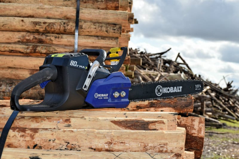 Editor’s Note: This is the original text from our reviewer when the Kobalt 80V Chainsaw came out. However, the ratings have been updated to reflect its performance in our recent chainsaw shootout.