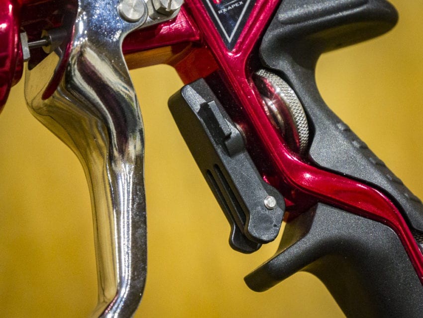 The Titan Rx-Apex Aluminum Airless Spray Gun sits atop the company’s aluminum spray gun line, above even the Rx-Pro from a couple years ago. As Richard mentioned, after spray quality, a spray gun’s desirability rests squarely on comfort and control. After all, you’ve got to hold this thing in the air, sometimes above your head, for hours on end. And so the aluminum frame is designed to minimize weight.