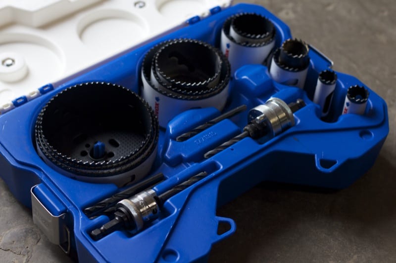 I love tools. Big tools, small tools, power tools, hand tools, you name itโbut I didnโt realize I had such an obsession with tools until I started receiving them in the mail to review. It brought me right back to my childhoodโฆopening Christmas presents and the anticipation of tearing through the wrapping not knowing what was inside. However, when I received theย Lenox 17 Piece Plumbers Hole Saw Kit in the mail, my heart kind of sank into my stomach like it does when you open a Christmas sweater from grandma. Whereโs the toys? Whereโs the power tools? Whereโs the fun stuff? The reason I felt this way is because of my past experience with hole saws. As I said earlier, I love tools, but I do have a few on my list that I could live without. Itโs not because of the job that requires them, but because of poor design and functionality. When I saw the 17 piece Plumberโs Hole Saw Kit by Lenox, I immediately had flashbacks of the last job I did where I had to cut a 2-ยผโ hole through an MDF cabinet for a kitchen drain line. I distinctly remember trying to attach the arbor and forgetting to grab an extra pair of pliers to lock it in. I remember the smell of smoke coming from the wood as I said to myself, โSurely Iโm almost through, just 10 more secondsโฆjust 30 more secondsโฆjustโฆoh forget it, Iโm gonna use a hammer to get the rest out!โ