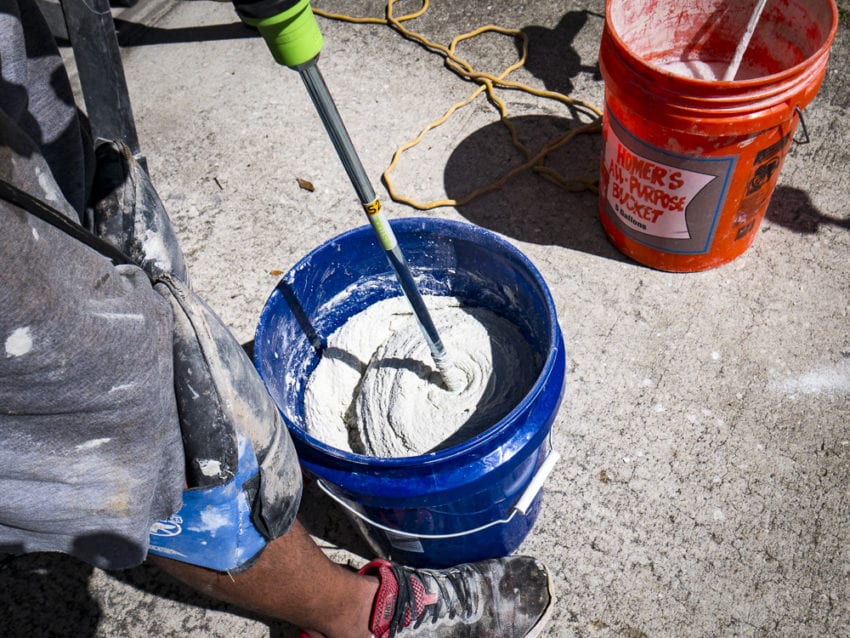 Before I started mixing, I had one concern about the spiral mixing paddle. It has a ring around the bottom of the paddle. In my experience, something about this design always seems to leave some dry mix in the bottom of the bucket. This is not only inconvenient, but it also brings up questions about the integrity of the mix youโ€™ve already used because you canโ€™t see the problem at the bottom of the bucket.