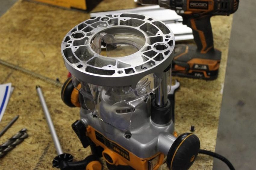 I think Iโve found the Triton TRA001โs new home. The only thing I struggled with by leaving it in the table was losing my overall favorite feature: the rack & pinion plunge. Solution? Pick up one of the Triton MOF001 2-ยผHP routers. The design and features are identical to its big brother, but at 25% lighter, it isnโt quite as top heavy. ย Although the handles are still higher than my preference, the Triton MOF001 feels more stable than the TRA001. The dust shields also seem to function better in the smaller MOF001, especially when routing harder woods. MDF dust still obscures view of the work piece pretty quickly though. Now I have a beast in the table with great features and a more manageable, decently powered, rack & pinion plunge router for free routing and guide use.