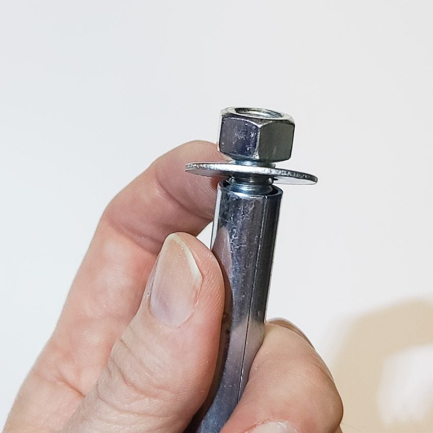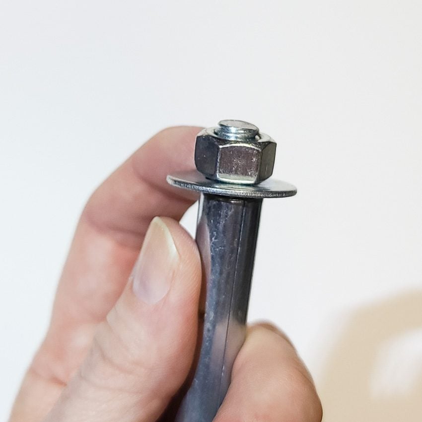 Once the hole is drilled and the anchor is inserted as far as it will go, drive the anchor in the rest of the way with a hammer or small sledgehammer, depending on the size anchor you are using. Be very careful here. Notice the photos below. There are two types of concrete wedge and sleeve anchors. High-quality premium brands have extra metal at the top of the bolt so you donโ€™t deform the screw threads when hammering it in. If you use the cheap anchors, back off the nut so you will not be hammering on the end of the bolt. You want to be hammering on the nut instead and it will protect the threads (see the photo on the far right). Donโ€™t use excessive force regardless.