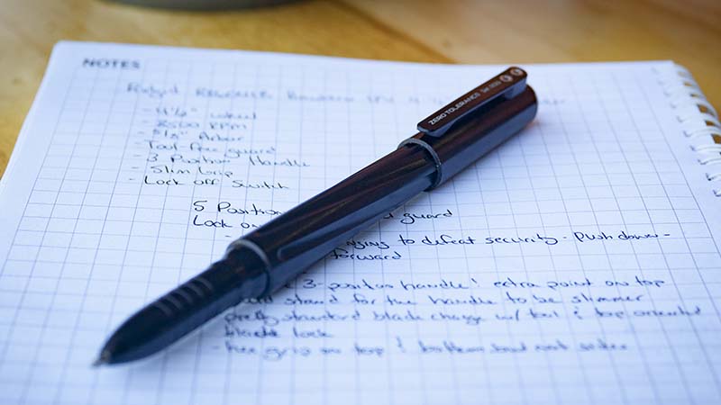 First and foremost, the Zero Tolerance Tactical Pen is a writing instrument and a pretty nice one. They include a Rite in the Rain cartridge that lets you write upside down and in any weather. You can replace it with a new one when it runs out or select your favorite Parker or Fisher Space Pen refill. Your ability to write smoothly has everything to do with where the pen touches the paper and the refill compatibility offers excellent options.