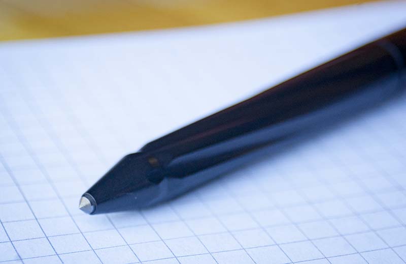 Beyond the cartridge point, ergonomics are a huge deal for writing instruments.ย ZTโs model is a little wider than I normally prefer on the grip. I got used to it pretty quickly though. Grooves cut into the grip keep it from slipping even though itโs a straight up metal surface. I also have the titanium model (itโs been discontinued, but you can still find it around). Itโs on the heavy side of things, but the 0010BLKโs aluminum gives it a solid feel without tipping the scales over the edge.