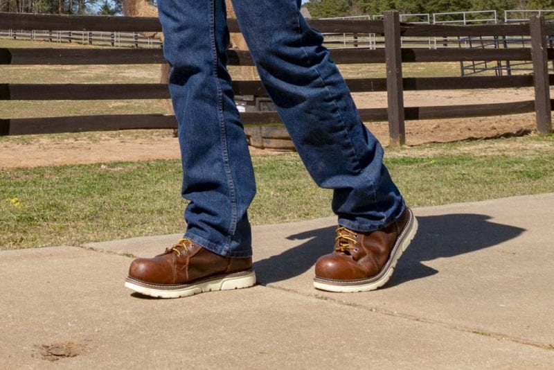 As a wedge boot, these look quite a bit different than a heeled boot, and that becomes even more noticeableย with the cream coloring on the outsole. It might take a little getting used to, but itโ€™s pretty much the direction that most current wedges are taking in the work boot sector.