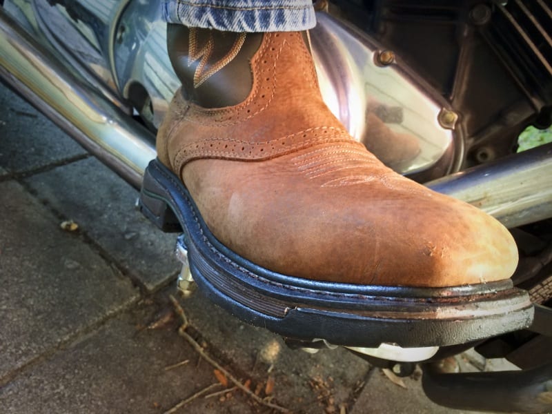 My foot is a tad wide and this boot felt great, particularly in the area of the heel. The steel toe of the Wolverine Javelina High Plains cowboy boots offers the protection you need without being obnoxious, and it left enough room to get it underneath the shifter of my cruiserโsomething I have trouble with when wearing some booths with a high upper. The sizing runs about right on these and I found that just a normal cotton sock was enough to provide the comfort I needed, though a boot sock wouldnโt be problematic either and would provide a more snug fit.