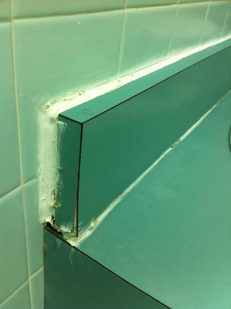 Even regular tile jobs can go overboard with caulkingโparticularly when covering up stains or mold. This never works, and it only builds up over time to often ridiculous levels. Take this bathroom corner, for example. It shows layers upon layers of caulk used to cover up obvious mold and cracks over the years.