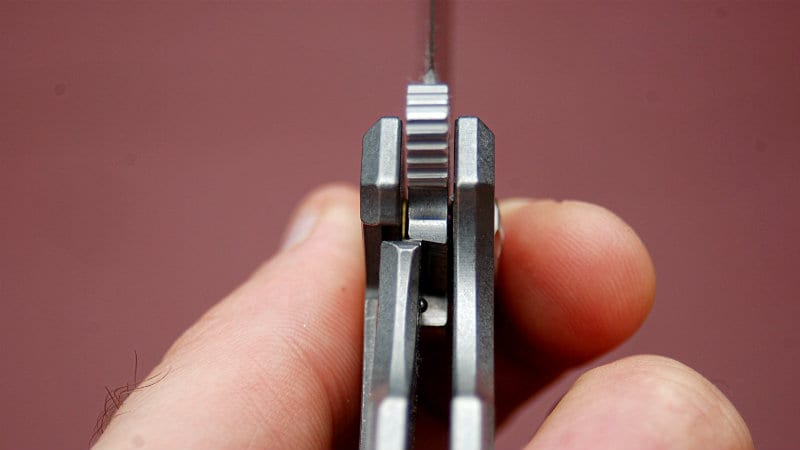 I recently handled the ZT 0900 knife with a somewhat oily hand, and it still felt totally secured. This surprised me because the titanium doesnโ€™t have any texturing. What aided the secure and strong grip is the large jimping on the blade spine. The blade design is also thick and hearty with plenty of belly for deep cutting. I like theย assuranceย ofย knowing my EDC knife is strong and able to withstand daily usage without the fear of failure. The balance of the Zero Tolerance 0900 is simply outstanding.